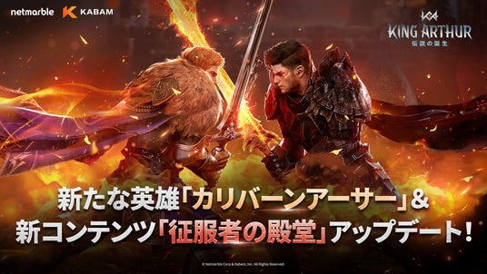 ネットマーブルは、同社の北米を拠点とする子会社Kabamが、スマートフォン(iOS、Android)やPC向けの新作中世部隊型RPG『King Arthur: 伝説の誕生』において、4月29(火)に、新英雄「カリバーンアーサー」や新コンテンツ「征服者の殿堂」を実装する大型アップデートを実施したことをお知らせいたします。