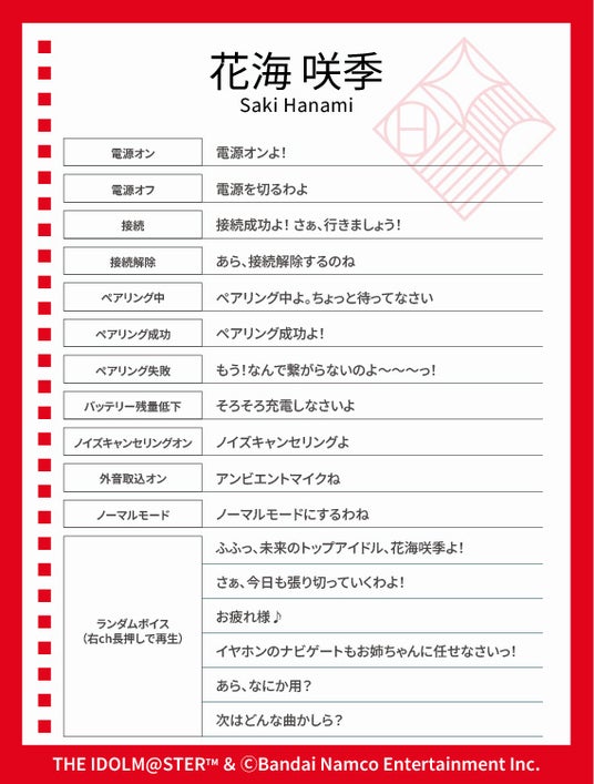 イヤホンの起動/終了や端末との接続状況をお知らせする「ボイスガイダンス」と、いつでも好きなタイミングで聴ける「ランダムボイス」を搭載。あなたの担当アイドルはどんな言葉をささやいてくれるかな?