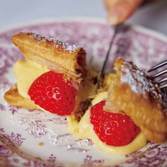 Chapter5 季節のフルーツで いちごのミルフィーユ、桃のクランブル、ソルベ、フローズンヨーグルト、ミントとかんきつのジュレ、キャラメルマロンペースト、フルーツのキャラメリゼ、かぼちゃのプリン、アップルパイ、レモンカード、アングレーズソース