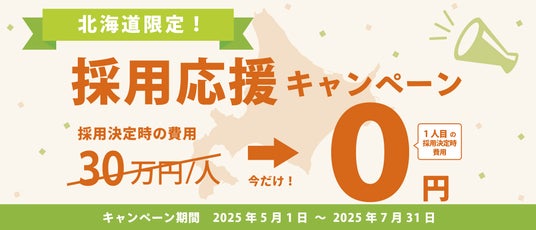 この度、観光・インバウンド専門の求人広告サイト「やまとごころキャリア」は、インバウンドの重要な拠点である北海道の観光事業者を応援したいという想いから「北海道限定!採用応援キャンペーン」を2025年5月1日(木)より開始いたします。キャンペーン期間中、やまとごころキャリア経由でご採用いただいた場合、一人目の採用費用が無料になります。