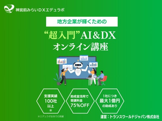 トランスワールドジャパン株式会社(東京都渋谷区)は、地域みらい総研株式会社(東京都港区)と連携し、2024年10月よりグループ企業向けに実施してきた DX・AI 研修プログラム 「神宮前みらいDXエデュラボ」 の成果を踏まえ、2025年6月より外部企業向け受講生の募集を正式に開始いたします。