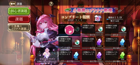 [紅き図書館の悪魔]小悪魔は、願掛けと同時開催中の『小悪魔のプラチナ課題』をコンプリートすることで、専用の衣装「天使」が手に入ります。