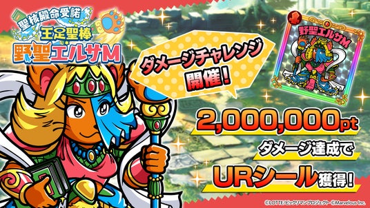 黄属性の「野聖エルサM」と戦うダメージチャレンジクエストを開催いたします。