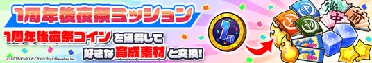 期間限定の「後夜祭デイリーミッション」をクリアし、「1周年後夜祭コイン」を集めて、「1周年後夜祭コイン交換所」で好きな育成素材と交換する内容となっております。
