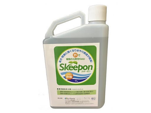 「スキーポン」は、酢酸(酢の主成分)の作用を活用した農業資材です。酢酸の作用で、植物の乾燥や高温への耐性を高めることで、収量や品質の維持、節水に繋げます。