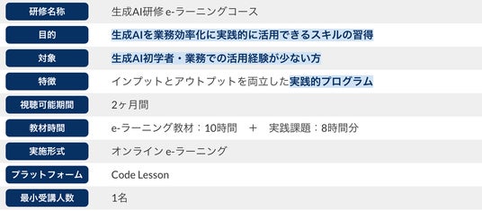 株式会社if(以下 if)は、法人向けオンライン学習プラットフォーム「Code Lesson」において、生成AI研修 e-ラーニングコースを 4 月 1日に正式リリースしました。