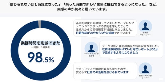 98.5 % の受講者が「業務時間を削減できた」と回答