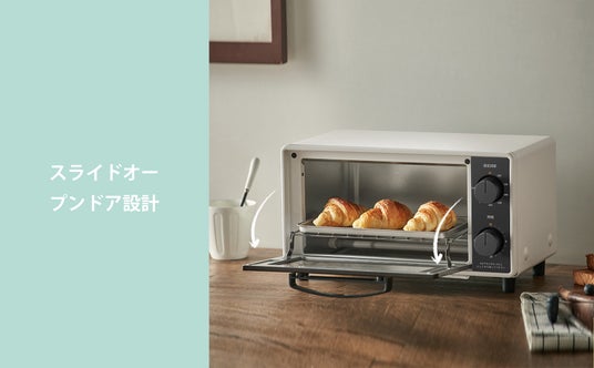 スライド式オーブンドアを採用しており、扉を開けると焼き網が手前にスライドするため、熱いピザやトーストもラクに取り出せて安全性もアップ。さらに、焼き網やパンくずトレーは着脱式で、丸洗いできる設計なので、お手入れも簡単。調理後の掃除も手間なく済ませられる、使い勝手と衛生面に優れた設計が魅力の一台です。