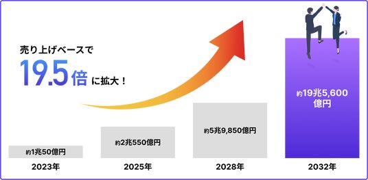 - 2032 年には 19.5 倍--“後手”は許されない加速度わずか 9 年で市場が 20 兆円規模へ到達。今から社内に AI 人材を抱えない企業は、19.5 倍 のビジネスチャンスを取り逃します。