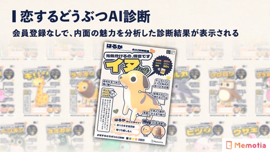 - AIトークの内容を基に、内面の魅力や特徴を診断する恋するどうぶつAI診断機能