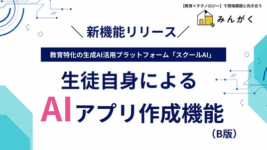 株式会社みんがく(本社:東京都新宿、代表取締役:佐藤雄太)は、提供する教育現場向けの生成AIプラットフォーム「スクールAI」に生徒自身が生成AIを使ってオリジナルの学習アプリを作成できる機能(ベータ版)をリリースいたしました。