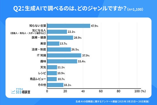 生成AIを使って検索するジャンルとして最も多かったのは、「知らない言葉(47.9%)」でした。