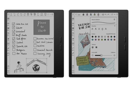 本シリーズは、紙に近い電子ペーパーの読みやすさと、Androidアプリの自由な利用を両立したタブレットです。7インチというサイズは電子書籍リーダーとしての利用にぴったり。さらに今回はInkSenseスタイラス(別売)に対応し、付属のNotesアプリでメモを作成できるようになりました。