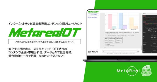 業種特化の専門AI開発・運営を行う株式会社メタリアル(本社:東京都千代田区、代表取締役:五石順一)は、OTT(Over The Top)コンテンツ企画・視聴者動向レポート作成AIエージェントとして、「Metareal OTTコンテンツ(以下、Metareal OT)」を5月14日(水)に新開発・提供開始したことを発表します。