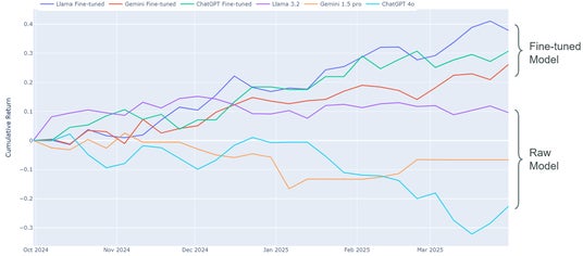 投資戦略のバックテスト。ファインチューニング後のモデルは好パフォーマンス