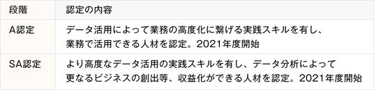 NTT西日本グループは、更なるデータドリブン経営の実現に向けて、高度な実践スキルを有し、データ分析によりビジネス創出・業務効率化等の業務実践が可能なデジタル人材の育成に注力しています。社外にも通用するスキルを持つ人材を育成するために、データサイエンティスト協会のスキルチェックリストを基に、独自の認定制度を導入し、知識・経験・成果の3観点での評価により認定しています。2025年度末までにSA認定400人、A認定8,000人の目標を掲げ、A認定は2024年度末時点で9,000名以上、SA認定も240名以上が認定取得しており、着実に育成を進めています。