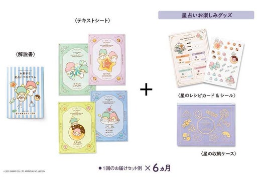 ・セット内容/解説書1枚(A3判変形四つ折り)、テキストシート4~6枚(A5判変形 お届けする回により異なります)、星占いお楽しみグッズ1~3点(お届けする回により異なります)