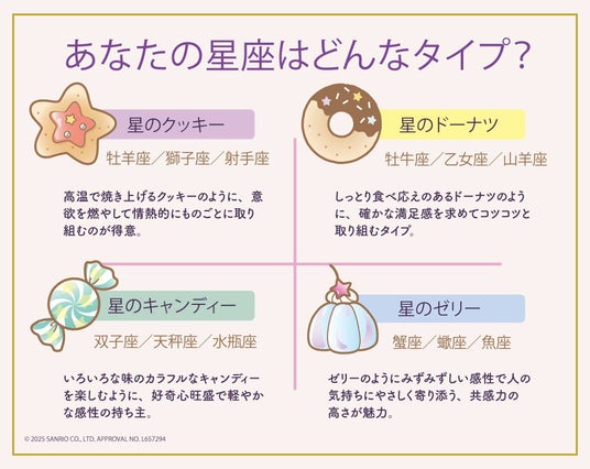 フェリシモが展開する学びの定期便「ミニツク(R)」は、5月19日より新商品「キキ&ララがナビゲート お菓子な星占いプログラム」を発売開始しました。本プログラムは、星座の特徴をお菓子で表現した「星のお菓子タイプ」という新しいタイプ診断で、本格的な星占いをライトに体験できるプログラムです。生年月日・生まれた時間・場所から自分のタイプを調べたら、付属の解説書で自分の個性を深堀りできます。星占いに楽しく触れていただけるよう、株式会社サンリオの人気キャラクターであるリトルツインスターズ(キキ&ララ)がナビゲート役に。おやつタイムのようなリラックス気分で、持って生まれた星で本当の自分を見つけるひとときを体験することができます。雨の日が増えるこれからの季節、外に出られない時間も前向きに過ごせる「自分に出会うおうち時間」として楽しんでいただけます。