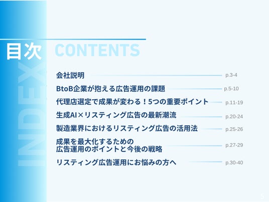 株式会社ベクトル(本社:東京都港区、代表取締役会長兼社長:西江 肇司、東証プライム:6058)の子会社であるOwned株式会社(東京都品川区、代表取締役社長、石井翔、以下「当社」)は、製造業界向けに「BtoB企業のためのリスティング広告代理店選定ガイド」2025年5月版(全40ページ)を無料公開いたしました。