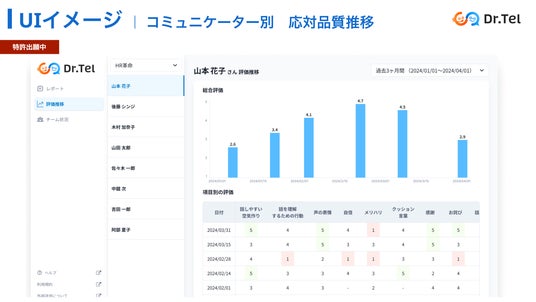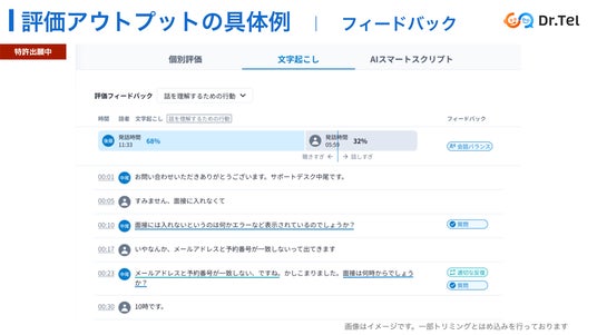 Dr.Telは、解析結果に基づいてコミュニケーターの強みや課題を可視化し、具体的なフィードバックを通じて改善を支援します。