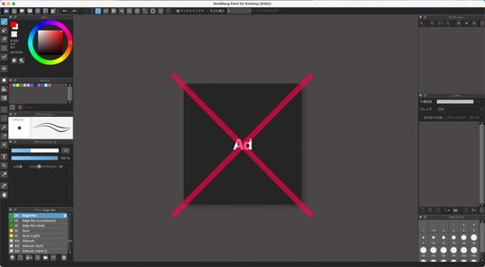 広告をすべて非表示にし、制作に集中できる環境を提供します。作業開始と同時に、集中力を削ぐようなポップアップ広告やバナー、お知らせなどはすべて非表示。クリエイティブな作業に没頭できる、ストレスフリーな環境を提供いたします。