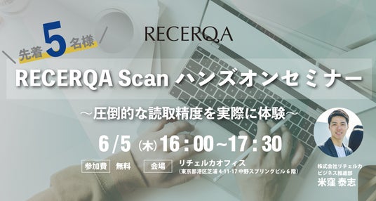 生成AI の社会実装をミッションに掲げるスタートアップ、株式会社リチェルカ(本社:東京都港区、代表取締役CEO:梅田祥太朗、以下「リチェルカ」)は、非定型帳票を高精度に読み取る生成AIネイティブな次世代AI-OCR 「RECERQA Scan」 の使い勝手や精度を体験できる、ハンズオンセミナー(少人数制・無料)を2025年6月5日(木)より定期開催します。