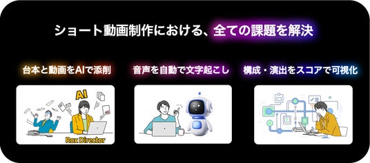 Rox株式会社(本社:東京都渋谷区、代表取締役:四辻 俊昭)は、SNS動画の台本・構成・演出をAIで分析・改善するマーケティング支援ツール『RoxDirector』の事前登録受付を開始いたしました。本製品『RoxDirector』は、AIによる台本添削、構成分析、音声の自動文字起こし、総合スコアリングを一括で実現する動画分析ツールです。従来の感覚に頼った動画制作プロセスを脱却し、誰もが“勝てる構成”をデータで可視化・改善できる環境を提供します。