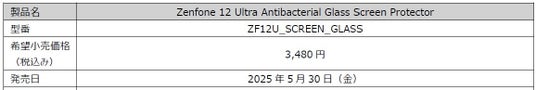 ※製品サイト: https://www.asus.com/jp/mobile-handhelds/accessories/all-series/zenfone-12-ultra-antibacterial-glass-screen-protector/
