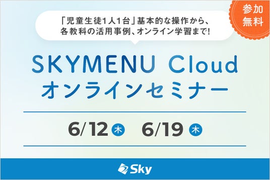 Sky株式会社では、児童生徒1人1台の学習活動端末支援Webシステム「SKYMENU Cloud」の基本的な使い方や教科指導、オンライン学習における活用例のご紹介など、毎月テーマを設けてオンラインセミナーを開催しています。