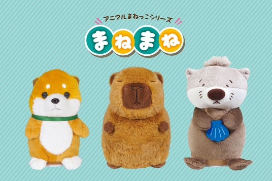 人気の「まねまねシリーズ」は、なんともいえない表情がクセになる「ラッコちゃん」が新たに登場。そして「しばいぬちゃん」「カピバラさん」がリニューアルして発売!お気に入りのかわいいアニマルフレンズを見つけて一緒に遊ぼうよ!