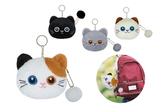 特徴:揺れるしっぽが超キュート!くりっとおめめとふわふわ触感がとってもかわいい猫さん顔のポーチ。中には好きな小物を入れられます。バッグに付けて「ぽんぽん」しっぽを揺らしてみよう!「ミケ・クロ・ブリティッシュ・ミックス」の全4種。