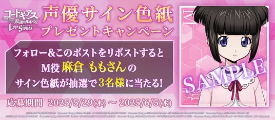 期間中にロススト公式Xをフォローし、対象のポストをリポストすると、 岡本信彦さん、 麻倉ももさんサイン入り色紙が抽選で各3名様に当たります。是非ふるってご参加ください!