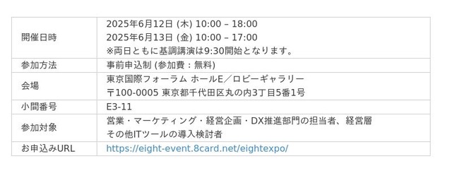 「Eight EXPO 第4回 営業マーケDX 比較・導入展」に出展いたします。