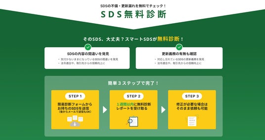 こうした背景を踏まえ、「まずは自社のSDSの状態を知る」という適切なSDS管理の第一歩を提供するために「SDS無料診断サービス」を公開いたしました。
