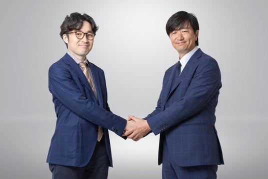 (写真左から)株式会社シアーコーポレーション代表取締役 土倉幸二、株式会社グリーンレイズ輻射空調エンジニアリング 代表取締役 藤原 淳之介