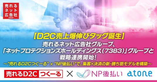 売れるネット広告社グループ株式会社(本社:福岡県福岡市、代表取締役社長CEO:加藤公一レオ、東証グロース市場:証券コード9235、以下「当社」)は、2025年5月30日(金)付で、東証プライム上場企業ネットプロテクションズホールディングス株式会社(証券コード:7383)の中核子会社であり、国内後払い決済のリーディングカンパニーである株式会社ネットプロテクションズ(本社:東京都千代田区、代表取締役社長:柴田紳)との戦略的業務連携を開始し、D2C事業者向けの売上最大化と収益構造改善を支援する新サービスの提供を開始いたしました。