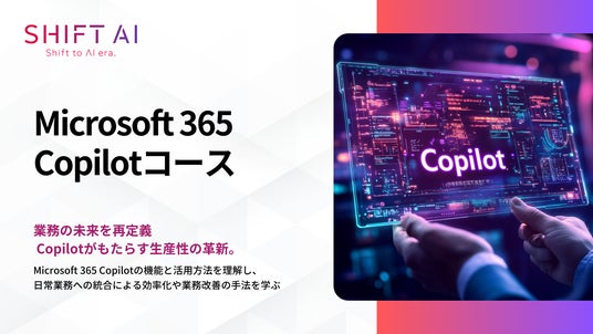 「日本をAI先進国に」を掲げAIのビジネス活用を学べる利用者数No.1※のAI大学「SHIFT AI」を運営する株式会社SHIFT AI(東京都渋谷区、代表取締役 木内翔大、以下当社 )は、日常業務の効率化を目指す企業・組織向けに、新たなAI活用講座「Microsoft 365 Copilotコース」を2025年5月30日より提供開始します。従来のCopilotコースに加えて本コースでは、Microsoft 365 Copilotの各アプリケーション(Word/Excel/Outlook/Teamsなど)における最新機能にフォーカスした活用ノウハウを学び、業務の自動化・省力化・意思決定支援を実現するための実践的スキルを習得します。