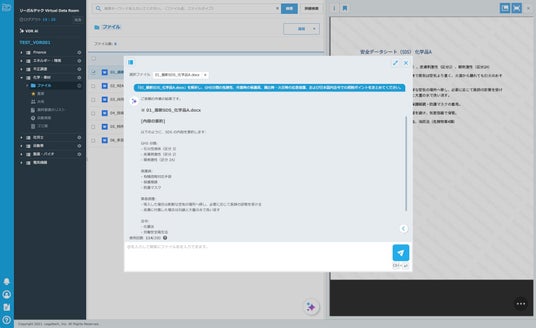 2025年5月30日 リーガルテック株式会社(本社:東京都、代表取締役:佐々木 隆仁)は、化学・素材業界向けに最適化したバーチャルデータルーム(VDR)「リーガルテックVDR」に、当社独自の生成AI「AI孔明」を統合した新機能をリリースしました。