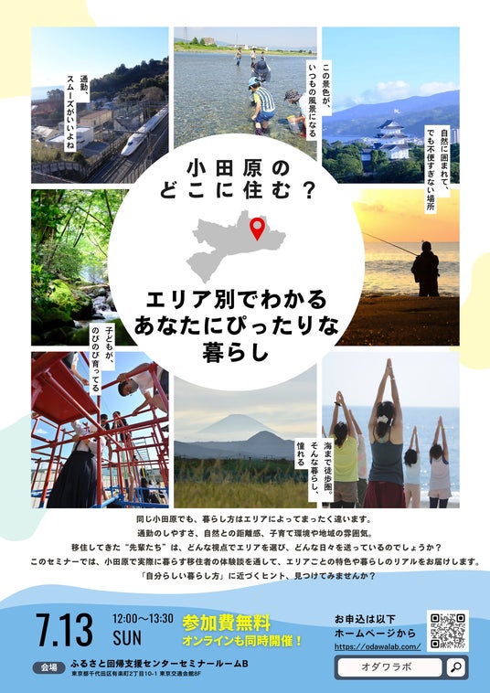 「おだわら暮らし」に焦点を当て、小田原の魅力を伝える移住セミナー「小田原のどこに住む?エリア別でわかる、あなたにピッタリな暮らし」を開催します。