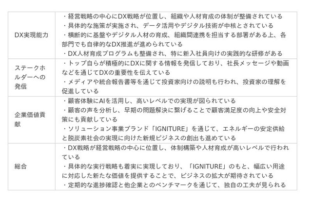今回の選定は、DXを取り入れたソリューション事業ブランド「IGNITURE」[*2]を立ち上げ、エネルギー分野の枠を超えた価値提供を目指している点や、東京ガス独自開発の生成AIアプリ「AIGNIS」[*3]等の活用によるCX[*4]×DXの取り組みを進化させている点、DX人材拡充による変革創出がDX人材の活躍範囲の拡大する好循環を目指している点等が、「DX戦略が経営戦略の中心に位置し、体制構築や人材育成が高いレベルで行われている」として、総合的に評価されたものです。