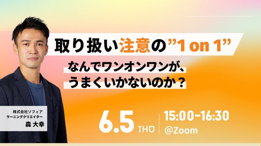 株式会社ソフィア(東京都港区麻布十番、代表取締役:廣田拓也、以下ソフィア)は『取り扱い注意の1on1なぜ、ワンオンワンがうまくいかないのか?現場の実例から学ぶ改善のヒント~』と題し、無料セミナーを開催します。