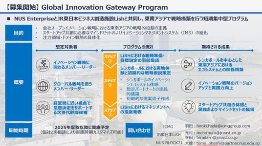 本セッションに関連して、ICMG Groupは2025年秋よりJR東日本、NUSと連携し、東南アジア市場におけるイノベーション戦略構築プログラム「Global Innovation Gateway Program」を展開いたします。本プログラムでは、日本と東南アジア双方のスタートアップエコシステムを繋ぎ、課題解決と具体的なビジネス共創を加速させる、より実践的な機会を提供してまいります。