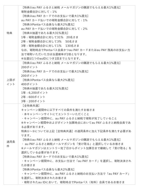 なお、寄附時点でPontaパス会員かつau PAY カードまたはau PAY 残高を利用して寄附いただいた方は、当選確率が2倍となります。