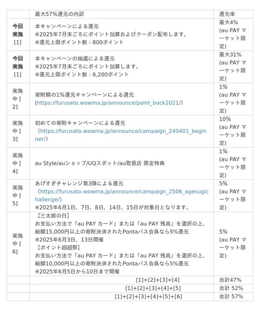 そのほか詳細はこちら(https://furusato.wowma.jp/announce/campaign_250601/)をご確認ください。