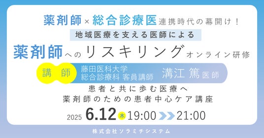 藤田総診は、地域医療を支える総合診療医を年間で40 人程輩出している医師の育成組織です。日本で多くの【総合診療医】を輩出している藤田総診と、2万7千人を超える薬剤師が利用する薬局向けシステムの企画・開発・販売や薬剤師研修を開催しているソラミチ、40店舗を超える薬局の経営やヘルスケア複合施設「オールファーマシータウン」を運営するマイライフ、薬剤師の採用支援や組織・人材開発支援を手掛けるDoraPharmaが連携し、今回の研修が実現しました。