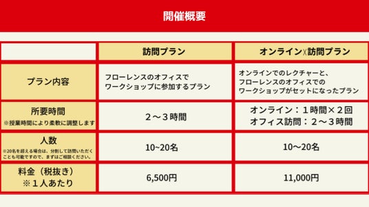 ※直接フローレンスオフィスに来訪いただく「訪問プラン」と来訪前にオンラインでの講義を開催する「訪問×オンラインプラン」の2プランをご用意しています。