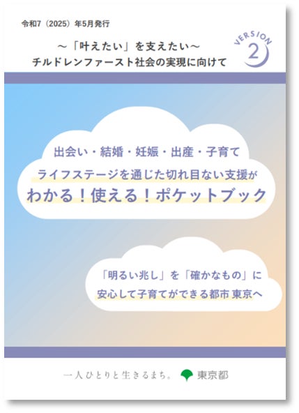 このたび、明るい兆しを確かなものにするため「『叶えたい』を支えたい」をコンセプトに都の支援策や少子化対策の現状を紹介するための、ポケットブック「~『叶えたい』を支えたい~ チルドレンファースト社会の実現に向けてversion2」と「結婚・子育て」「育業」に関するショート動画を作成しましたので、ぜひご覧ください。