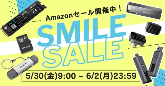 Amazon で5月30日(金)9:00から6月2日(月)23:59 にかけて開催される「Amazon スマイルSALE」にHIKSEMI製品がお得なセール価格で登場します。