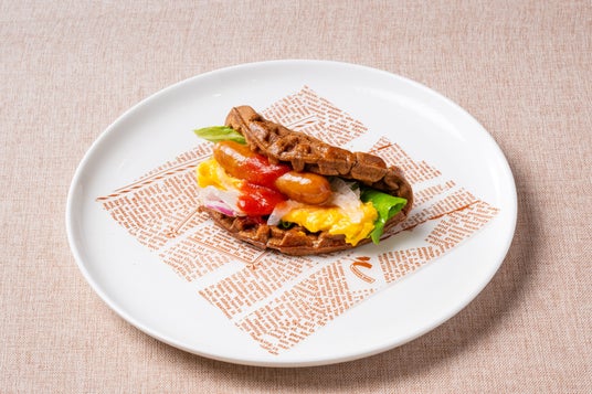 ワッフルにウインナー、スクランブルエッグ、レタスをサンド(アレンジイメージ)