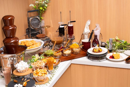 2.4Fシャルロッテの朝食ビュッフェで、ワッフルまたはコアラのマーチパンケーキのアレンジを楽しむ